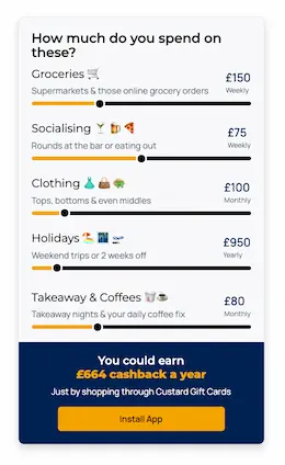 The Custard Gift Cards app is a React Native Expo based app for iOS and Android devices. It allows users to buy gift cards and earn a percentage of cashback, which gets applied to their custard account. When users earn over £10 they can cash out this money!